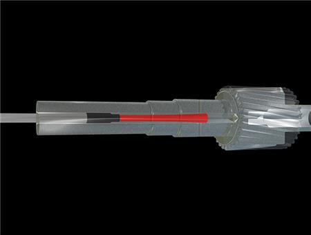 汽车减速齿轮十字交叉孔去毛刺,用xebec红色内孔刷CH-A12-3L,推荐使用转速10800rpm,进给速度300毫米/分钟,去毛刺干净无残留,陶瓷纤维材质制成,耐磨耐用。