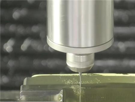 SUS303不锈钢钻0.5X6mm小径钻深孔主轴,用中西nakanishi中心出水电主轴,将转速调整到2万转每分钟,3秒钟就能完成一个孔。钻1023个孔只需51分9秒。