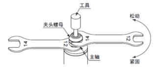 在主轴上套上附带的12mm扳手进行紧固。 |
