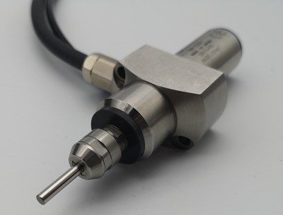 如上图所示,春亨工具可辅助你设计合适的治具,将高频铣固定在侧面刀座上,摆好高频铣的角度就可以钻斜孔。这款主轴体积小,特别适合在狭小空间内适用。转速高达8万转,旋转跳动精度1μm以内,搭配合适的刀具,提高钻微小斜孔的效率。