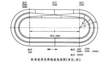 比赛在周长400米的跑道上进行,跑道由两条直线和两条180度的弧线连接而成,分内、外两道,道宽5米。内跑道的内圈半径为25米,外跑道的内圈半径为30米。比赛时每组2人,同时滑跑,每滑1圈交换1次内、外道。
