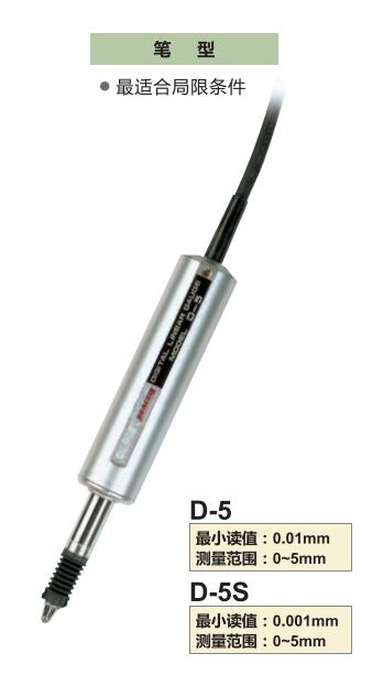 孔雀peacock电子千分表D-5S,是一款笔型电子外接式千分表,测量范围0-5mm,最小读值0.001mm,测定压力0.5N以下。
