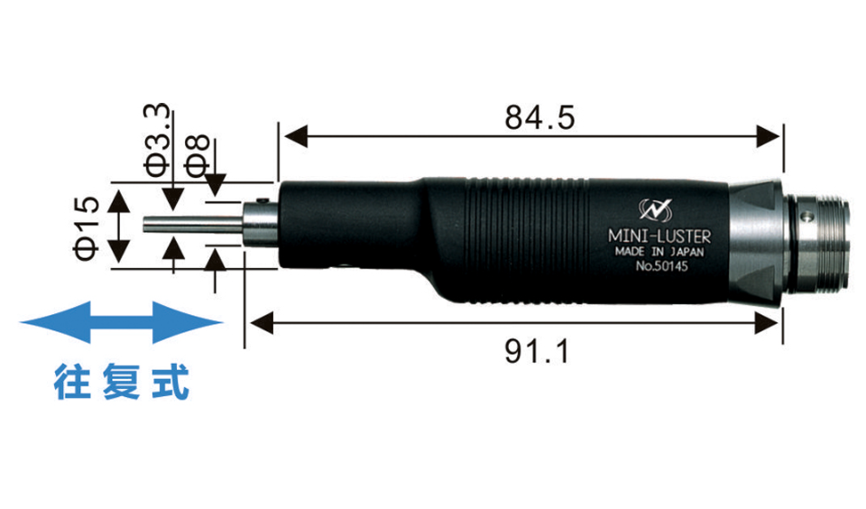 最适合往复式快速抛光、研磨、去毛刺等作业。手柄本身有内置马达,直接将电源线插头插入控制器。