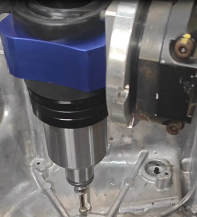 气缸盖去毛刺太难?机械臂加装msiy-30AQC自动换刀主轴,可搭配多把刀具,对气缸盖实现24小时无人自动化去毛刺加工。