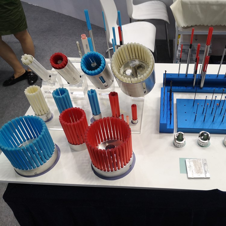 锐必克自动研磨套筒将齿片安装在机床上的某一个位置,在刷毛需要调整长度的时候,由主轴将自动调整套筒带到齿片安装位置,沿着齿的走向带过,通过内齿轮的转动刷毛即可伸出。