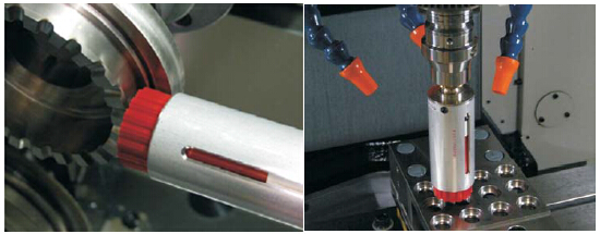 XEBEC锐必克交叉孔去毛刺实例:机加工后留下的毛刺厚度在0.2mm以下的细微毛刺均可去处.最适合于单点式去除交叉孔细微毛刺.请与手用工具,加工中心,CNC数控车床,机械臂配合使用.