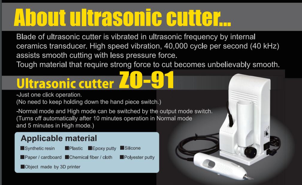 日本本多HONDA小型超声波切割刀ZO-91是旧款超声波切割刀USW-334、USW-334ke的替代品,由内部陶瓷换能器以超声波频率振动,每秒40,000个周期(40 kHz)的高速振动有助于平滑切割,可以切割合成树脂,塑料,环氧树脂腻子,纸/纸板,化纤/布,聚酯腻子,3D打印机制造的物体,硅树脂、军事模型,铁路模型、印刷电路板、帆船模型等。