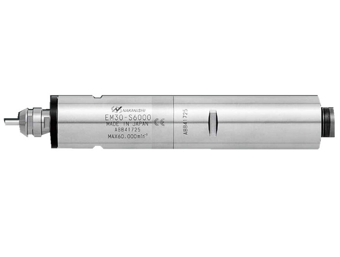 日本NAKANISHI高速电主轴EM25-S6000,属于E3000系列产品,主轴马达一体式,转速高达6万转,搭配夹头CHA(φ0.5-φ4.0mm)。