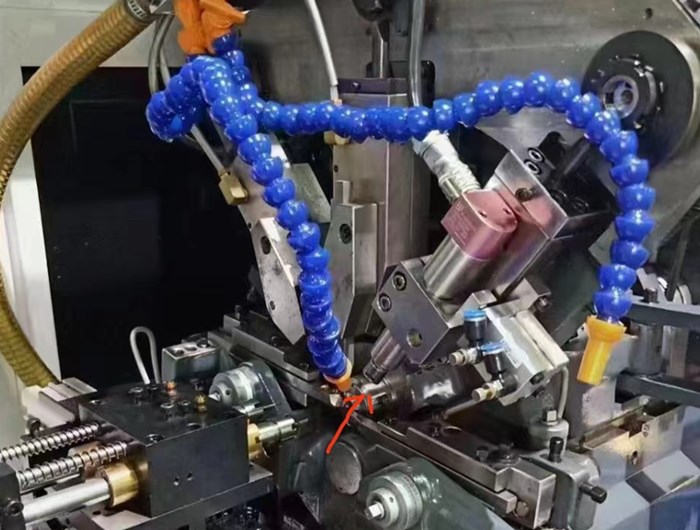 图为MSIY-2510电主轴加装在凸轮机车刀位进行斜孔加工的加工案例。