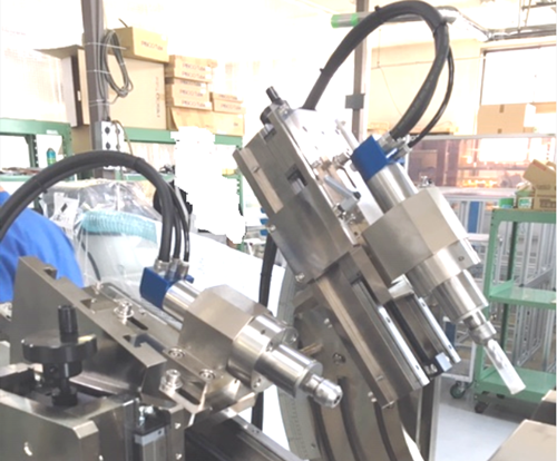 图为大扭矩电主轴BMS-4020RA加装在去毛刺机上对工件进行打磨抛光去毛刺使用。