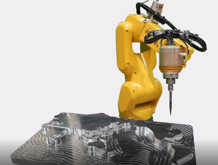 视频为发那科工业机器人加装中西高刚性电主轴BMS-4040-RGD对铝合金航空件进行高精密铣削加工案例,转速高达40000转每分钟,可提高铝合金铣削效率,铣削效果也非常好,满足航空件的表面光洁度要求。