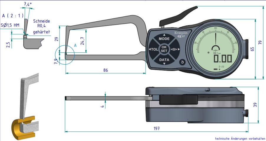 德国kroeplin数显外卡规K2R20S,测量范围:0—20 mm,最高探头臂长:85毫米。快速测量确定,分辨率为1μm,使用更便捷,更精准!