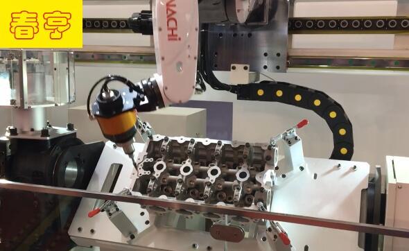 气缸盖去毛刺,可在机器人末端加装加装自动换刀浮动电主轴来去除,通过气压调节浮动力大小,实现柔性去毛刺效果,而且带自动换刀功能,可快速精准地更换刀具,提高气缸盖去毛刺效率。