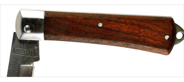 史丹利10-225直刃电工刀,采用特殊锰钢制成,韧性好,硬度高;进口红木手柄,坚硬耐磨!
