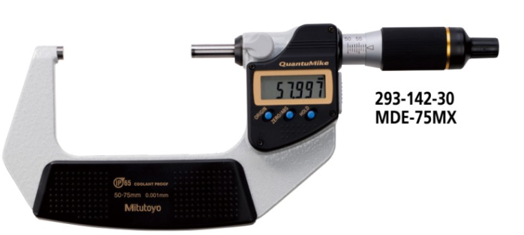 日本三丰mitutoyo快进数显外径千分尺293-142-30,型号:MDE-75MX,测量范围:50 - 75mm ,分辨力:0.001mm。单手握持即可在同一测量时间内实现6步测量,与传统千分尺相比,定位时间和测量时间可分别降低60%和35%。