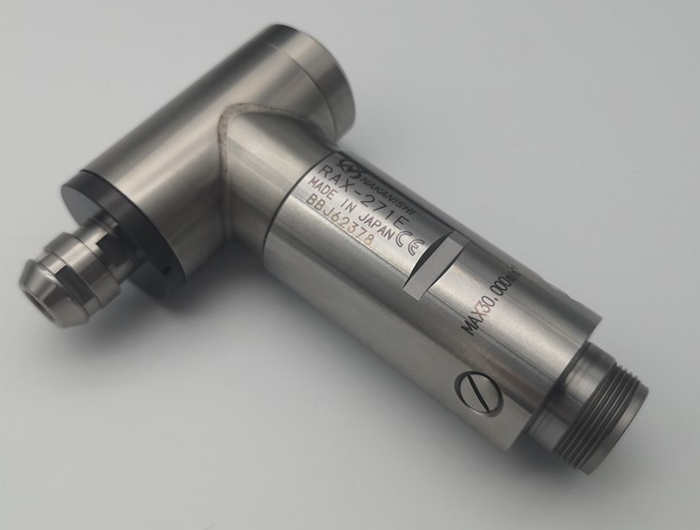 NAKANISHI中西直角电主轴RAX-71E,直径30mm,是一款内置减速器的电主轴,降低转速,提高扭矩,入力侧最大转速30000转,出力侧最大转速5000,跳动精度2μm以内,适用于侧铣、内孔研磨,去毛刺等加工。