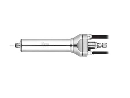 中西nakanishi中心出水电主轴CTM-4020,高压水冷电主轴,功率1.2KW,转速200,000min?1可调节,可夹持刀具φ3.0~φ6.35mm。特别适用于钢件等硬质材料小径钻深孔使用。