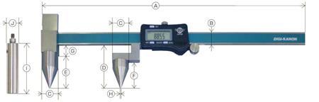 日本中村kanon数显孔距卡尺E-RM30DX,测量范围300mm,精度0.01mm,主尺侧测针和圆锥/圆柱钳口可互换,可进行三种测量:节距间、端面圆孔、壁面圆孔。