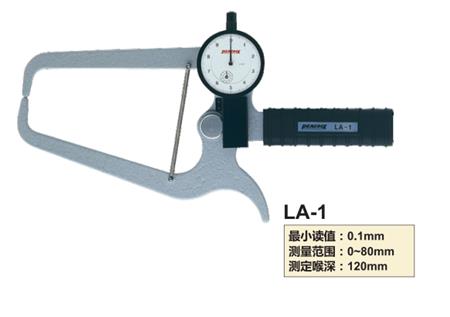 日本孔雀peacock带表外卡规LA-1,精度:0.1mm,测定范围:0-80mm,测定喉深:120mm。
