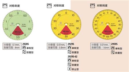 三丰mitutoyo指针式百分表2929S,精度0.01mm,测量范围0.8mm,单转型,防震型,高强度淬火不锈钢心轴,适于高强度测量。使用硬质合金测针。