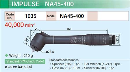 NSK脉冲打磨笔NA45-400,60度角形外壳均为铝合金,适用于去除难以用直型达到的角落和表面的锐边毛刺。