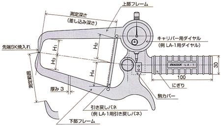 日本PEACOCK孔雀带表外卡规,LA系列,产品型号规格齐全,精度有0.1mm、0.05mm、0.01mm可供选择!用于测量难以测量的外径尺寸和厚度测量!具体产品型号及参数如下:
