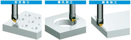中心钻兼倒角刀,节省了工具更换装置的工序, 提高生产效率。