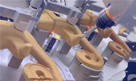在汽车领域有一些零部件需要使用砂芯铸造,砂芯部件铸造完成后,在模具开模时沿着分模面处会产生毛刺,取出铸造砂芯后通过人工刮出毛刺,其去毛刺效率较低,容易漏刮毛刺。使用去毛刺工具容易对砂芯部件的其他地方产生剐蹭伤害。NAKANISHI浮动去毛刺主轴,保证了工件的准确性,防止误差出现,可以有效提升砂芯部件的去毛刺效率,且实现砂芯自动化去毛刺的功能。