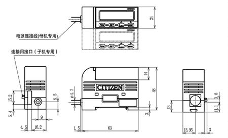 1台母机可连接15台子机。RS232C仅可与母机 显示屏部分可分离安装,可以把显示屏单独安装在设备的控制面