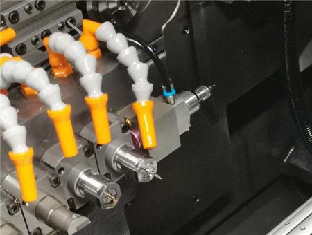 上图为津上走心机加装合适的治具,侧面加装高频铣的案例。